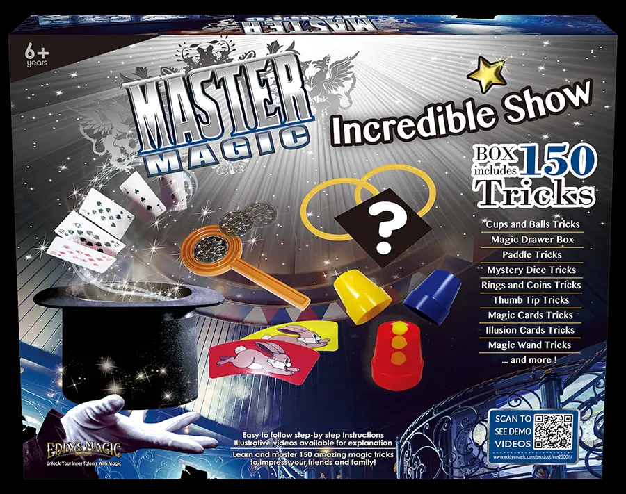 This Incredible Magic Show case with 150 magic tricks. You can learn a variety of selected Magic Tricks with our step-by-step instruction manual. Just master the tricks and you will become a real Magician!